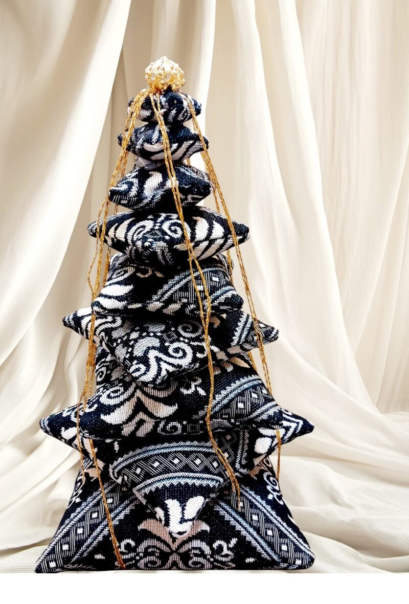 Albero di Natale, realizzato a mano con tessuti che riprendono i disegni della tradizione sarda
